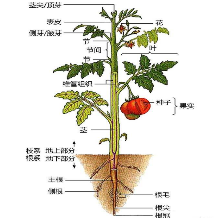植物共有六大器官:根、莖、葉、花、果實、種子。