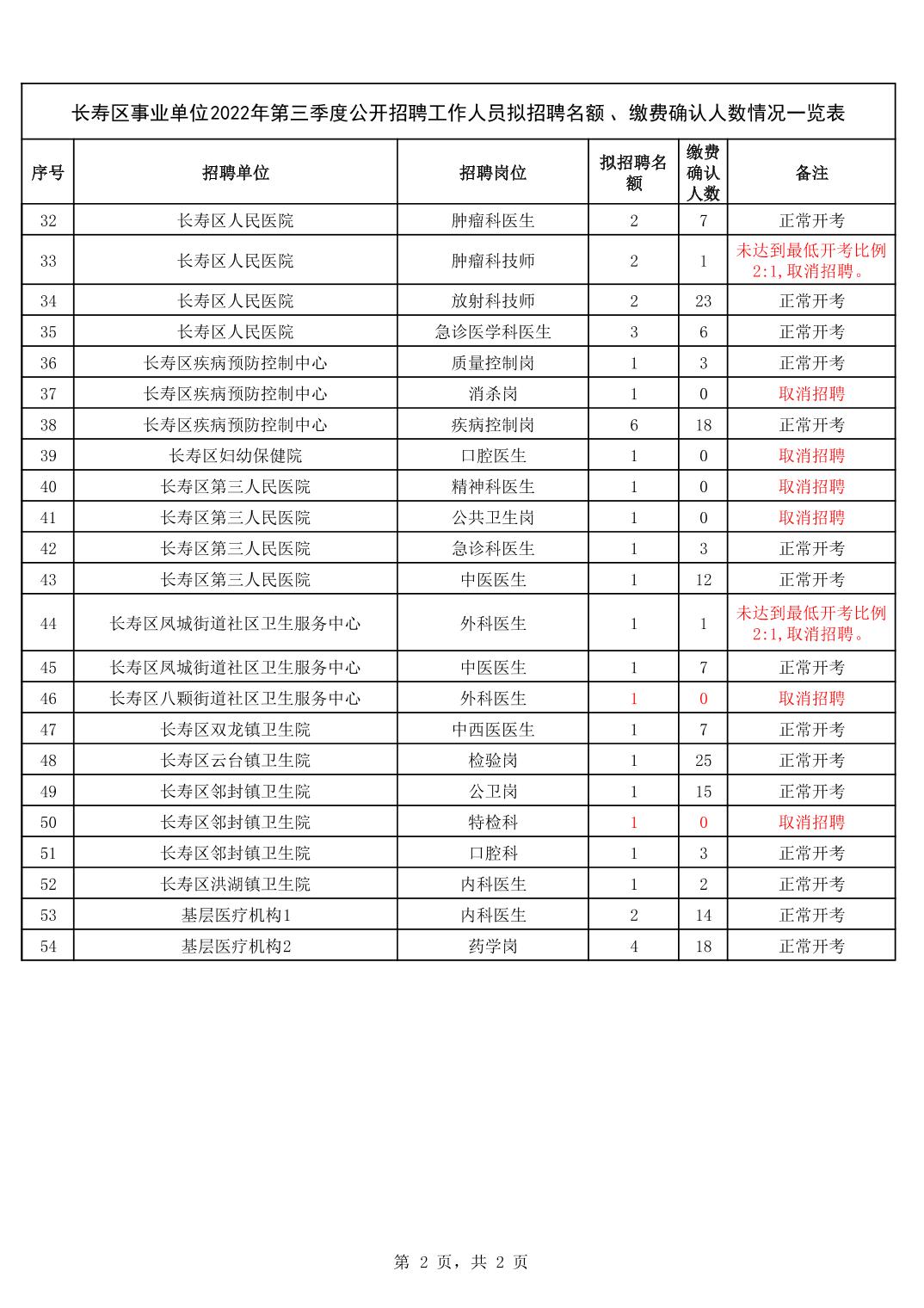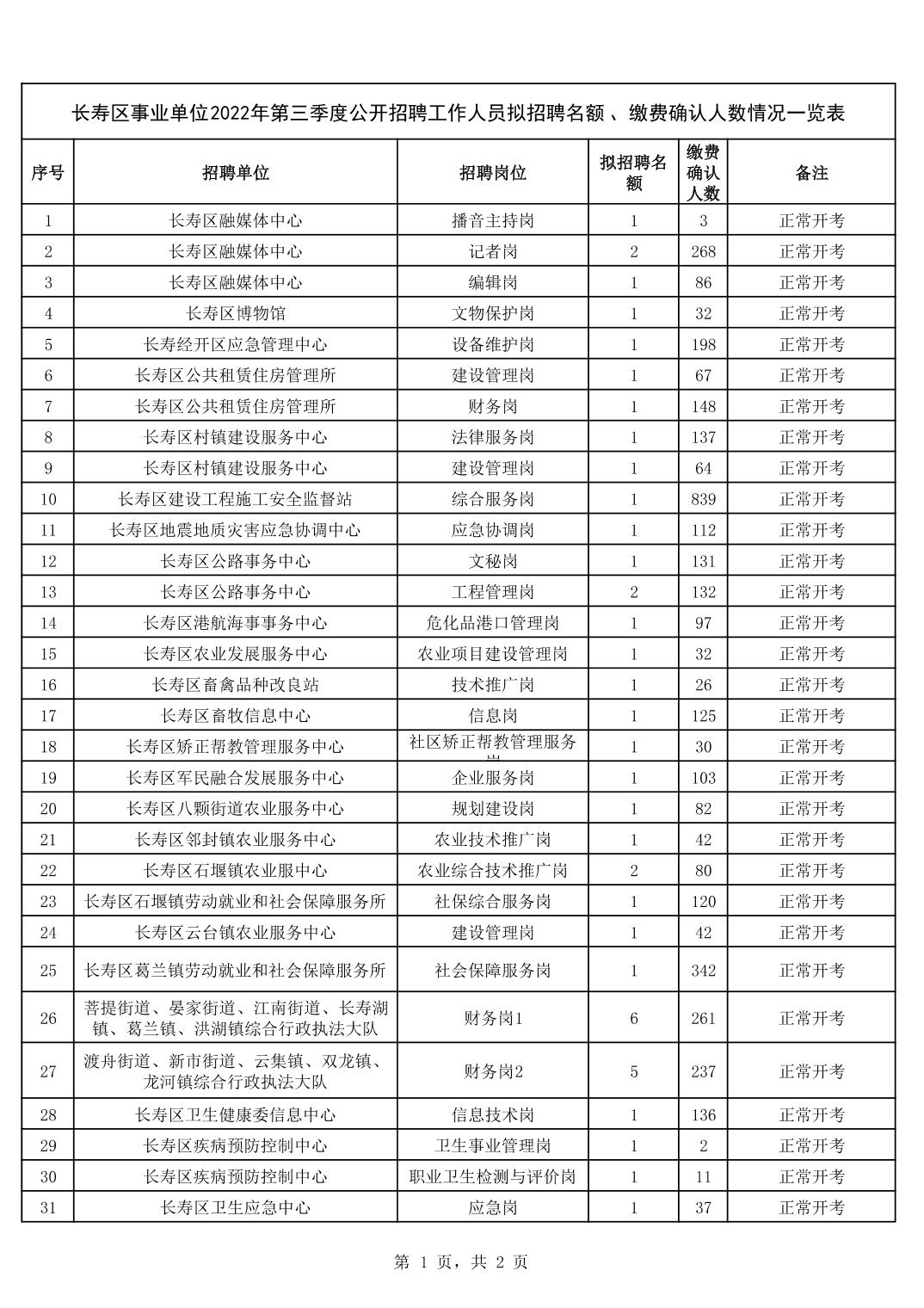 原標題:長壽區事業單位2022年第三季度公開招聘工作人員擬招聘名額、繳費確認人數情況一覽表