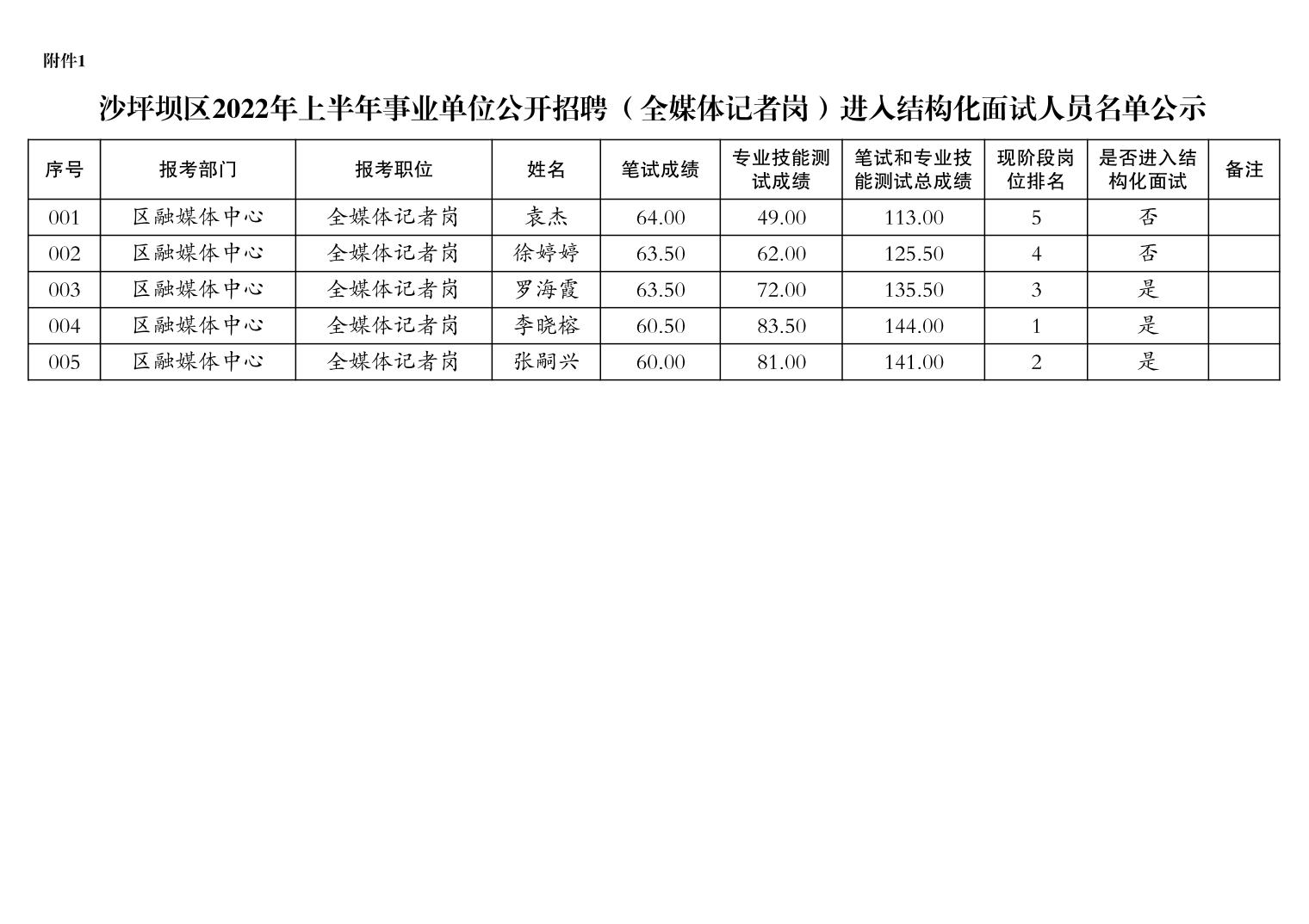 原標題:沙坪壩區2022年上半年公開招聘事業單位工作人員結構化面試通知