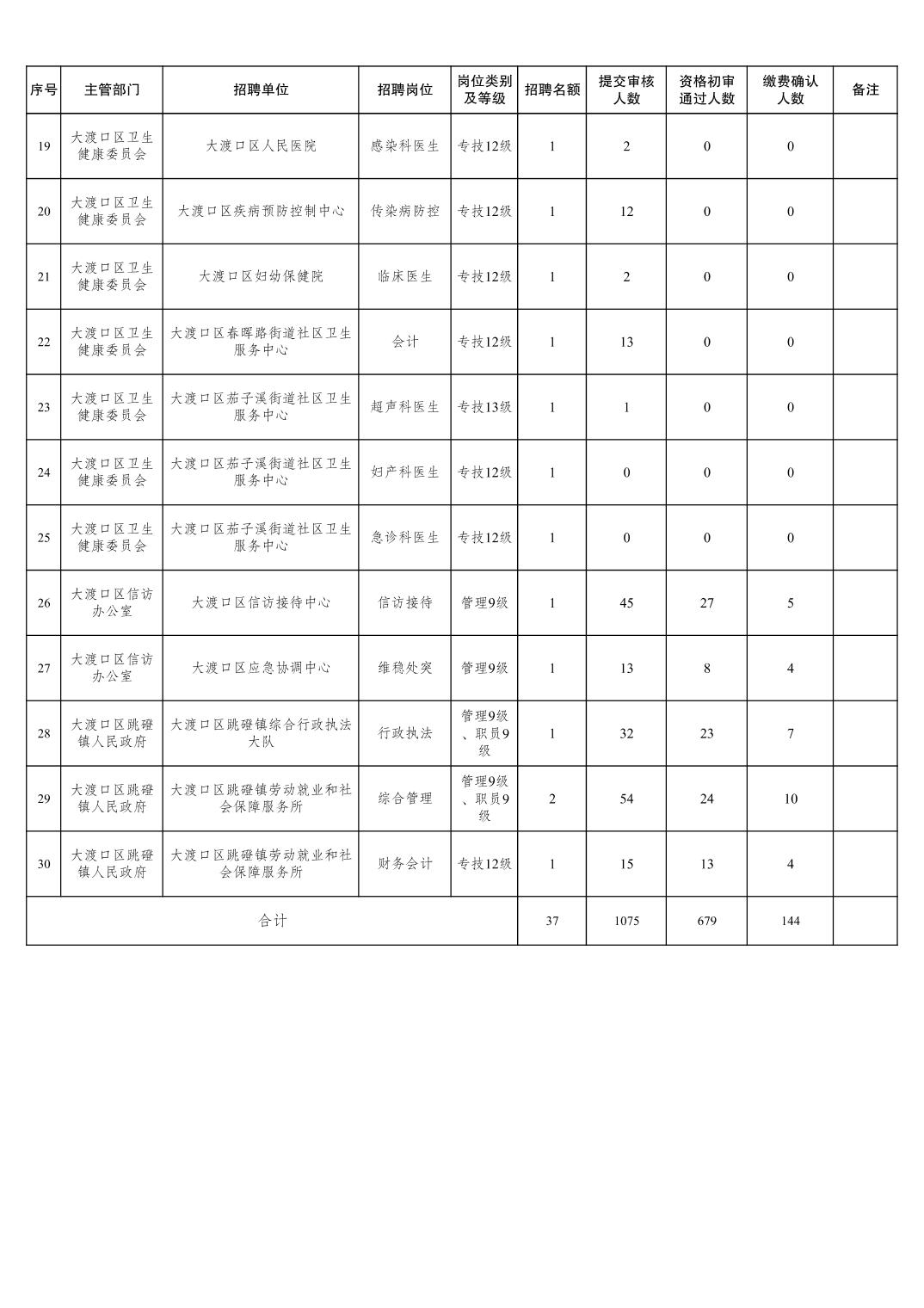大渡口區(qū)事業(yè)單位2022年下半年公開(kāi)招聘工作人員報(bào)名統(tǒng)計(jì)表(截至8月19日9時(shí)).pdf