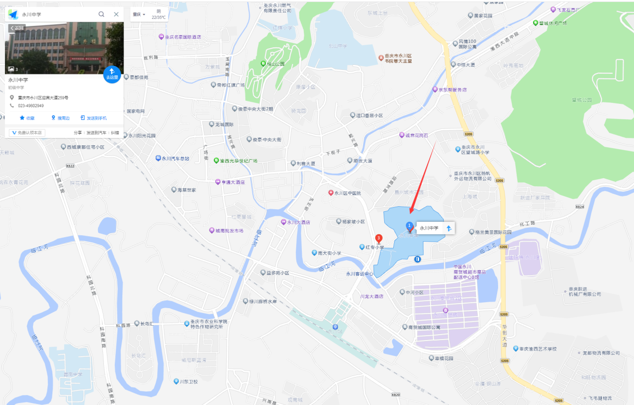 重慶文理學(xué)院附屬中學(xué)、重慶市永川中學(xué)校(老校區(qū))和重慶市永川區(qū)興龍湖中學(xué)校距離永川區(qū)中心城區(qū)較近,請各位考生根據(jù)自身情況,合理安排時間,乘坐相應(yīng)的公交車、出租車或網(wǎng)約車前往。