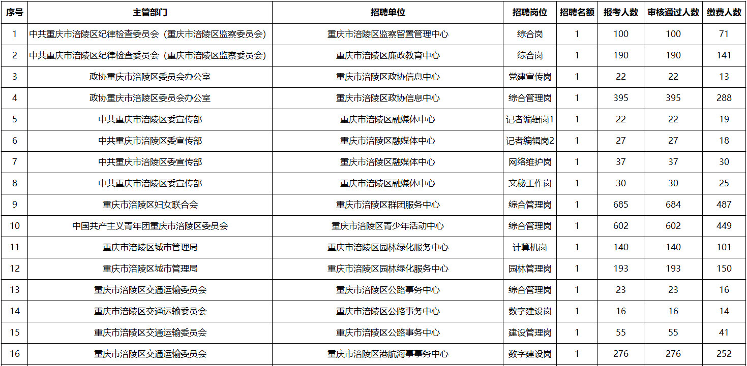 原標(biāo)題:重慶市涪陵區(qū)事業(yè)單位2024年第四季度公開招聘工作人員報名統(tǒng)計