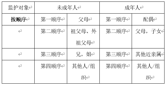 無民事行為能力或者限制民事行為能力的成年人,由下列有監護能力的人按順序擔任監護人: