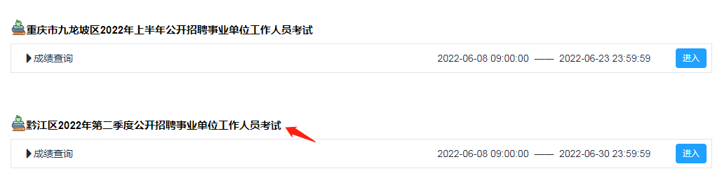 2022年上半年重慶市黔江區事業單位公開招聘考試成績查詢入口 點擊進入↓↓↓