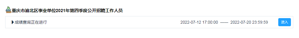 2021年第四季度重慶市渝北區事業單位公開招聘考試成績查詢入口 點擊進入↓↓↓