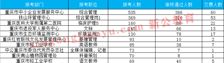 重慶事業單位考試網為大家整理了本次考試報名人數最多的前十崗位。不管是報名前十還是繳費前十,排名第一的都是重慶市中小企業發展服務中心的綜合管理崗。此崗位國民教育本科及以上即可報名,學歷要求低,并且不限專業、工作經歷,也沒有專業科目的考試,面試形式為結構化,因此報考人數較多,成為熱門崗位之一。