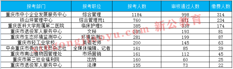 重慶事業單位招聘考試網為大家整理了本次考試報名人數最多的前十崗位。位居第一的依舊是重慶市中小企業發展服務中心的綜合管理崗。本崗位國民教育本科及以上即可報名,學歷要求低,并且不限專業、工作經歷,也沒有專業科目的考試,面試形式為結構化,因此報考人數較多,成為熱門崗位之一。相比19日的報名數據來看,排名前五的崗位沒有變化,重慶市退役軍人服務中心擠進前十,而重慶紅巖聯線文化管理中心基建管理一職下降至11名。