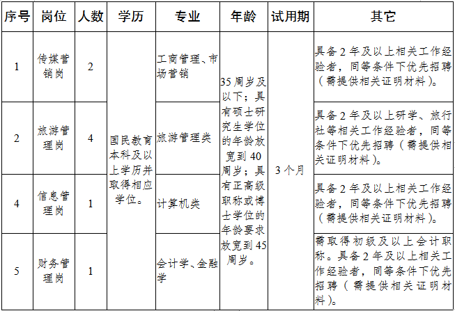 (三)公開招聘人員崗位及條件一覽表