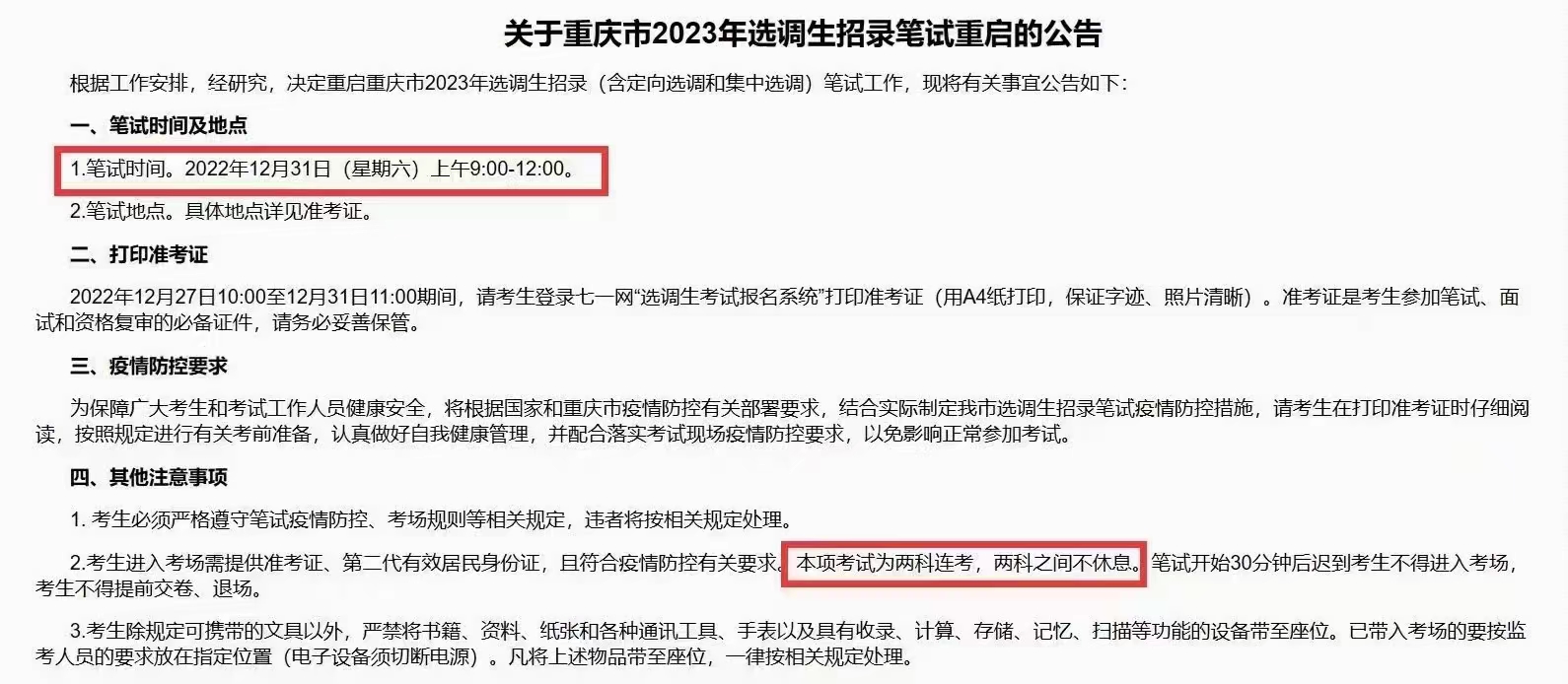 原標(biāo)題:關(guān)于重慶市2023年選調(diào)生招錄筆試的補充公告