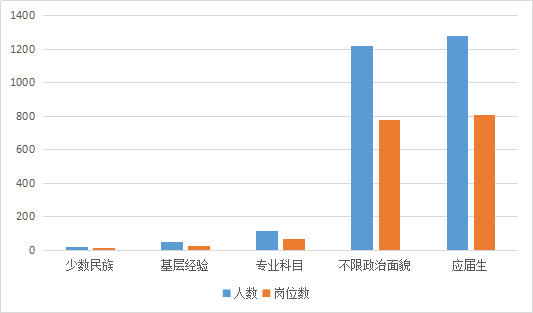 另外,有15個崗位限少數民族報考,有少數民族戶籍的考生可以多考慮這些崗位,可以避開過大的競爭壓力。