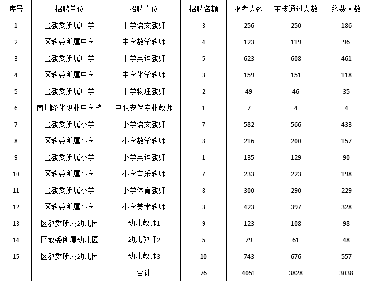 南川區(qū)2019年公開招聘教育事業(yè)人員報名人數(shù)公布