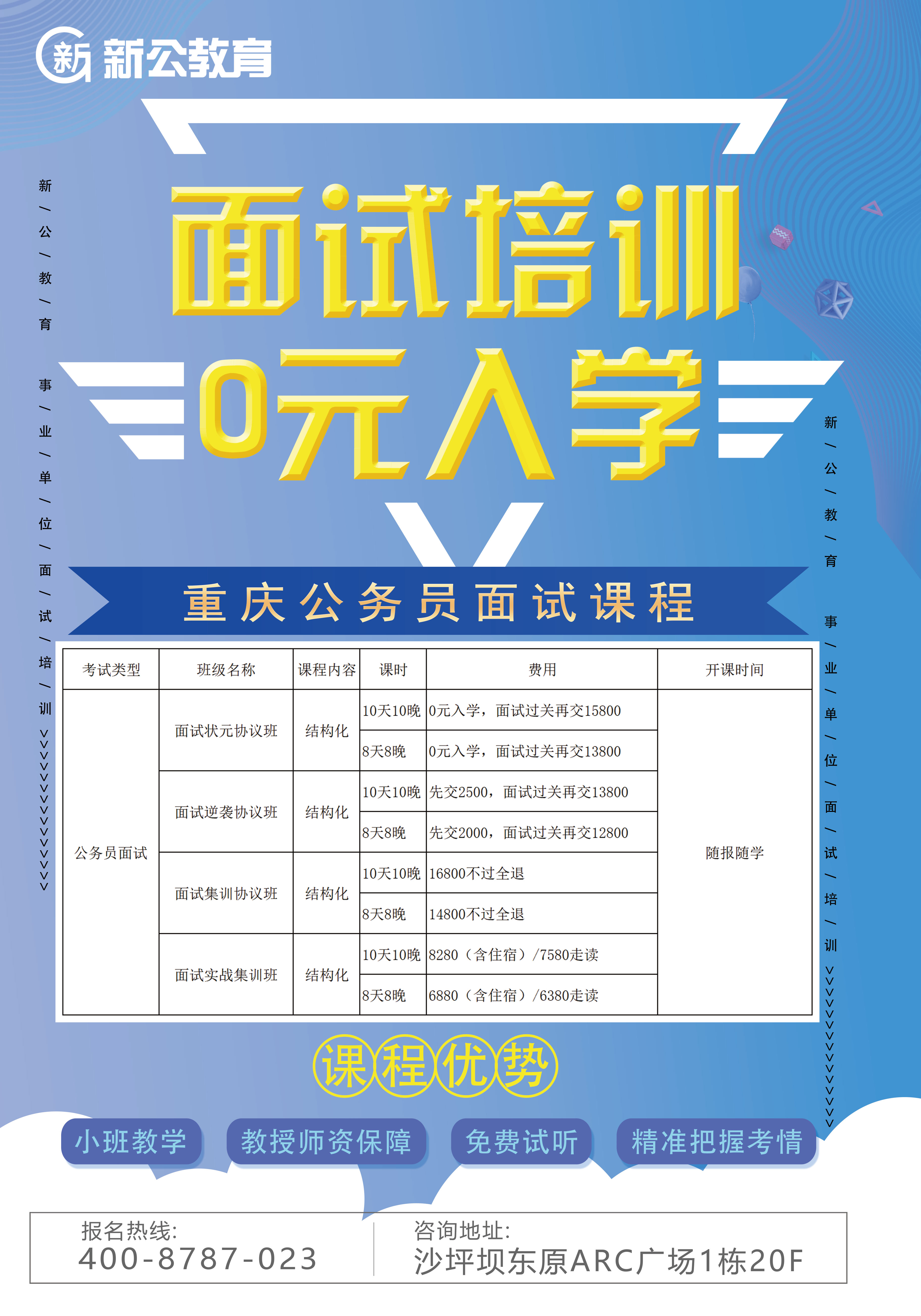 重慶市公務員考試即將在9月25日發布成績,為使進面的同學能第一時間了解面試大綱,掌握面試資訊,學習面試技巧,新公教育為大家整理了最新面試課程體系,幫助同學們順利考上,進入理想崗位!