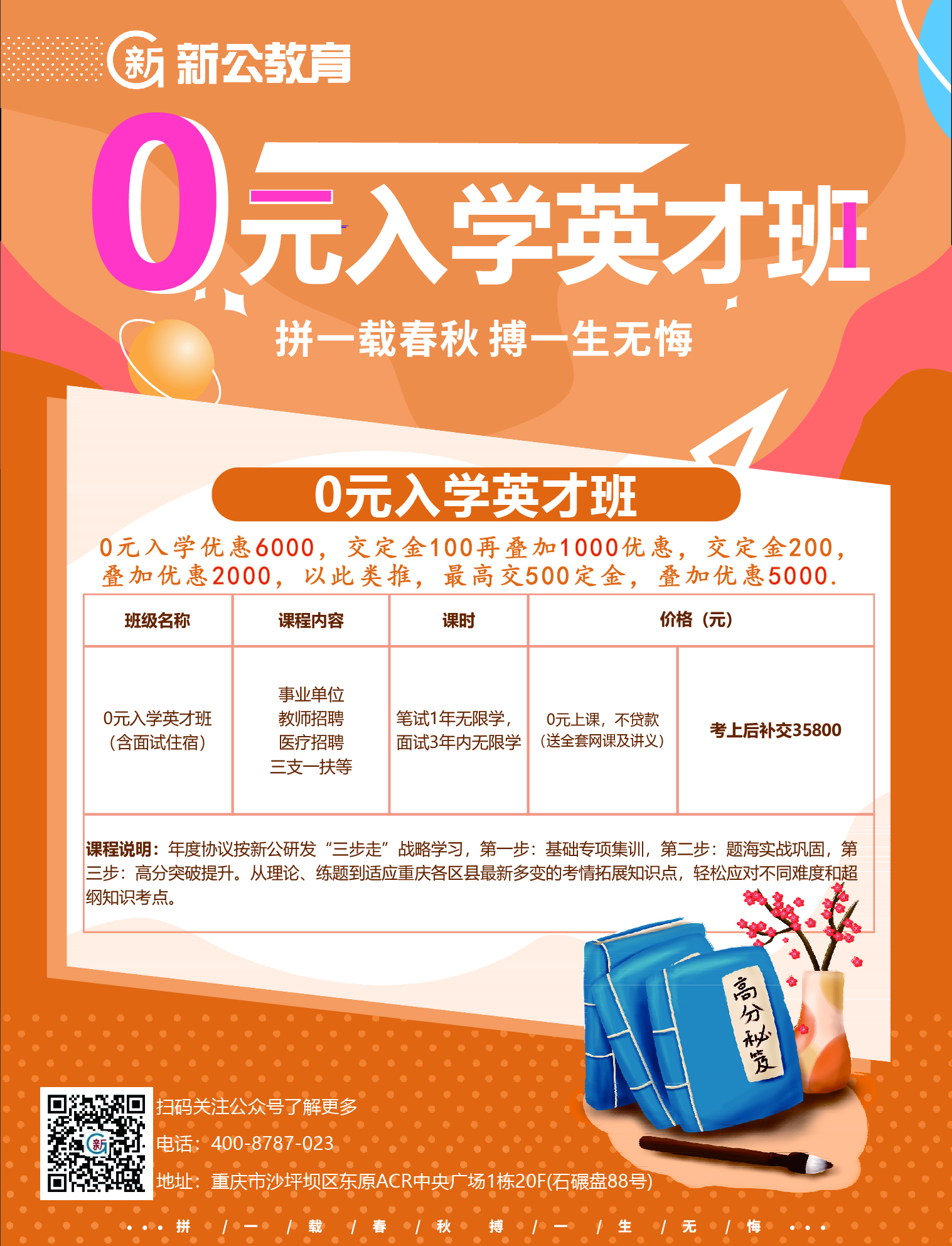 新公教育為你提供更多考試資訊和招聘公告可關(guān)注微信公眾號(hào)【新公教育(cqxgjy)】查看!