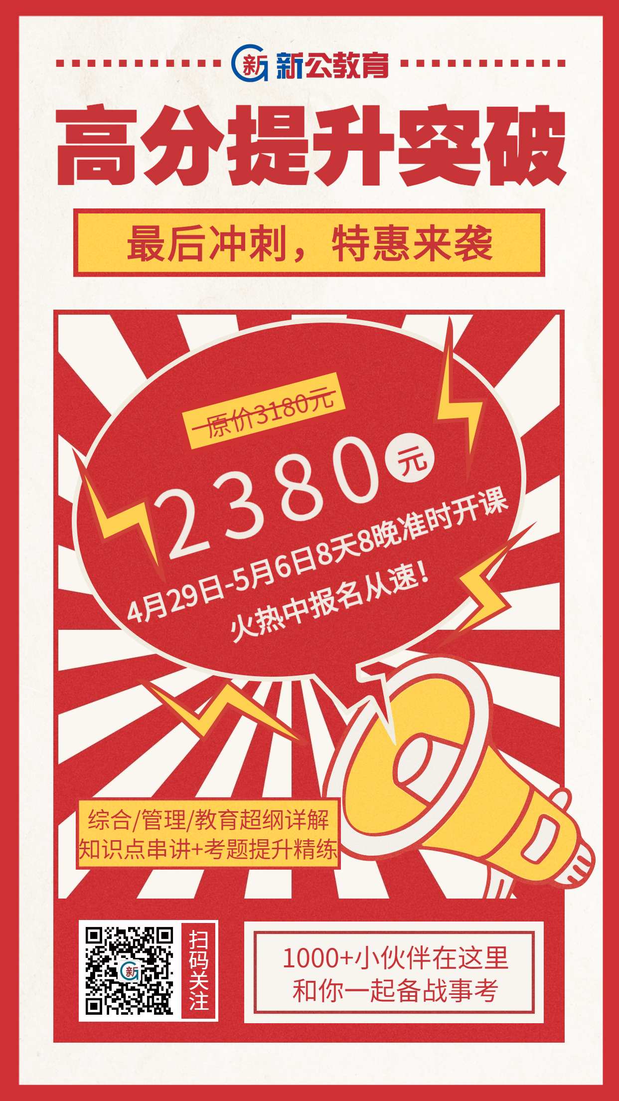 4月29日起開啟黃金備考!8天8晚強勢助力!市屬搶分勢在必得!