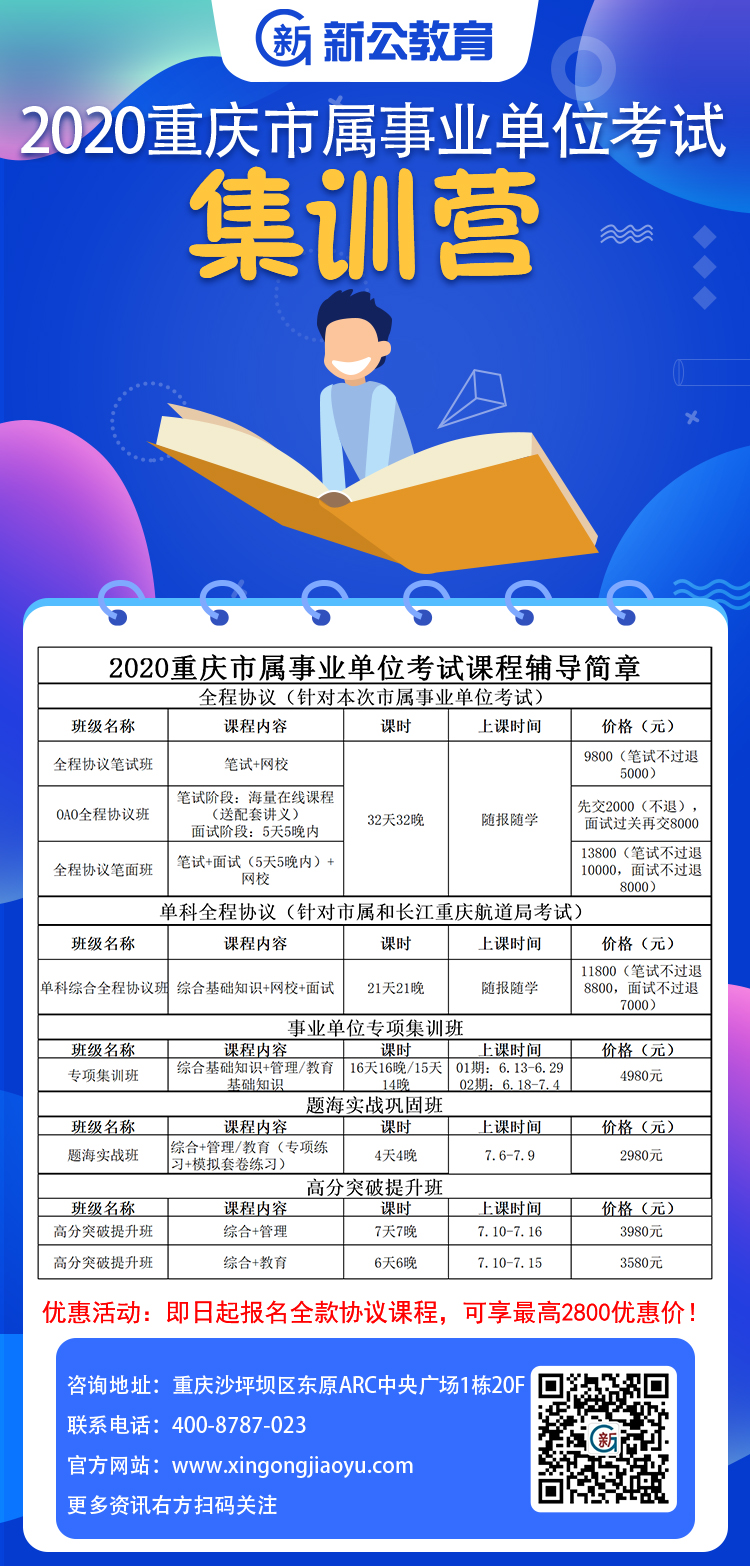 新公教育為你提供更多考試資訊和招聘公告可關注微信公眾號【新公教育(cqxgjy)】查看!