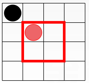 此圖為4*4的16宮格,其左上角的格子里有一個黑色的圓,中心有一個紅色的圓。