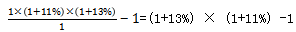 ”即是倍數,所以2018年是2017年的1.13倍,2017 年是2016年的1.11倍,隔年增長率為1.13×1.11-1。