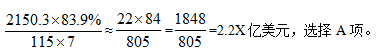 對外承包工程新簽合同額在5000萬美元以上的項目有115個,占新簽合同總額的83.9%。結合題目假設條件可知,所求為
