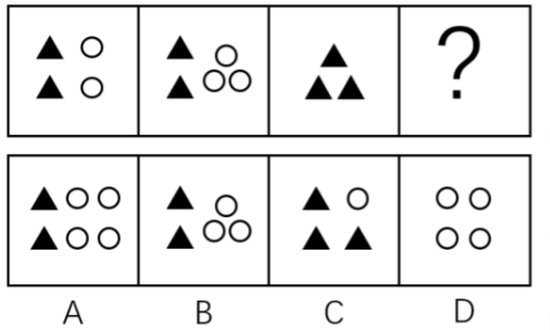 【解析】C。題干存在兩種元素,且無(wú)數(shù)量規(guī)律,考慮元素代換。運(yùn)用前圖形+后圖形=2倍中間圖形的公式進(jìn)行計(jì)算,(2三角形+2圓)+3三角形=2(2三角形+3圓),化簡(jiǎn)得到,1三角形=4圓,題干圖形都代換后圓的個(gè)數(shù)依次為10、11、12,則?處應(yīng)該等價(jià)于13個(gè)圓,只有C項(xiàng)符合,故本題答案為C項(xiàng)。